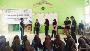 Sosialisasi IWO Lampung Timur di SMPN 1 Labuhan Maringgai. (Foto: L86)LIPUTAN86.ID — Upaya mencegah tingginya angka kekerasan perempuan dan anak di kabupaten Lampung Timur, Pengurus Daerah Ikatan Wartawan Online (PD IWO) gelar sosialisasi di SMPN 1 Labuhan Maringgai, Lampung Timur, Jum’at (7/11/2025).